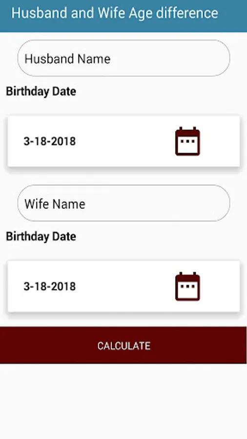 3) Husband & Wife Age difference calculator To calculate the difference between two dates and shows the difference in the terms of years, months, weeks, days, hours, minutes, and seconds.