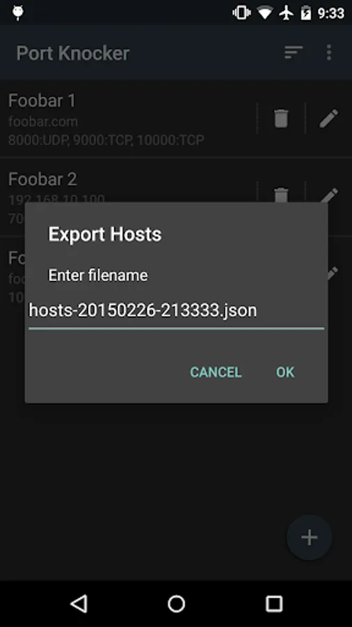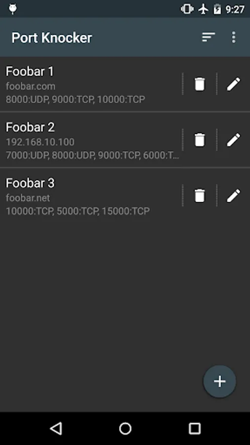 A basic port knocker client for Android. Similar to the other port knocker apps but with a nicer interface. Includes a widget and the ability to choose an application to launch after knocking. The media/storage permission is needed for the import/export feature which allows you to save your list of hosts and then load them later.