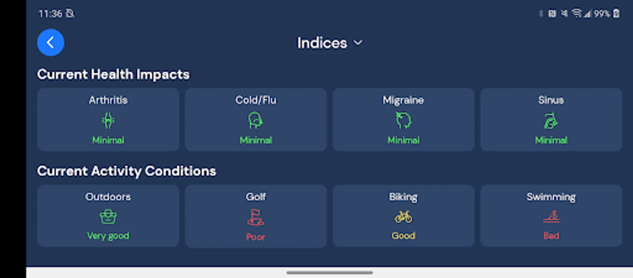 • Really on the go? Get instant access to your current conditions, temperature and extended outlooks.