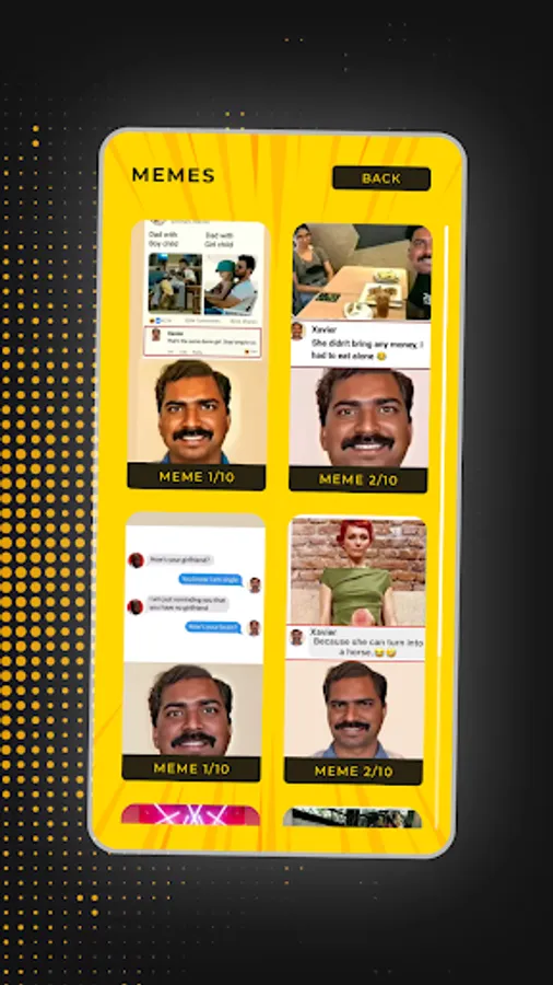 But that's not all! The Xavier app goes above, beyond to enhance your experience. Each comes accompanied by a photo, ensuring that you can easily identify your favorites at a glance. This visual reference adds an extra layer of convenience and makes browsing the meme library an absolute joy.