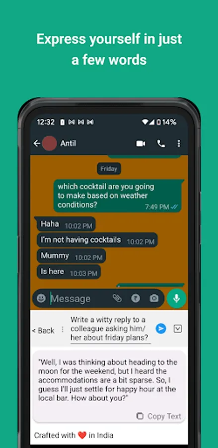 In conclusion, our keyboard app is an excellent tool for anyone looking for a fast, efficient, and personalized typing experience. With its intelligent search function, message and email generation capabilities, and content generation tools, users can easily search, generate, and create content based on their tone and prompts. Its intuitive and user-friendly design, compatibility with different devices and platforms, and lightweight performance make it an excellent choice for people who want to streamline their typing experience and improve their productivity.