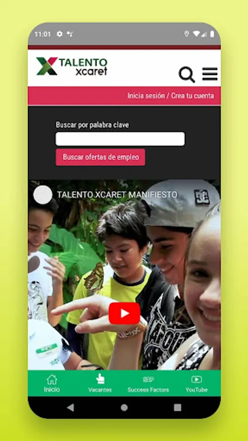 Also, there is a vacancy option to see all the job opportunities within Grupo Xcaret to grow in this great family.