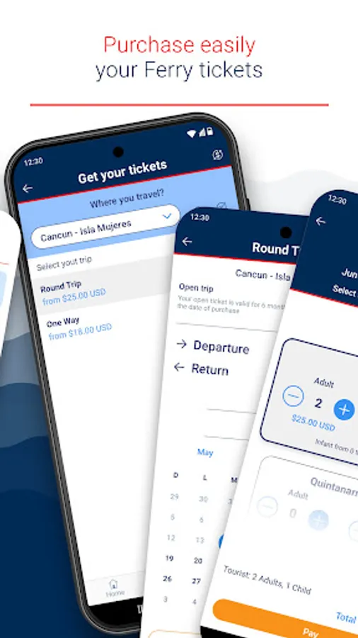 • Get your digital tickets by purchasing at the Ferry Xcaret App.