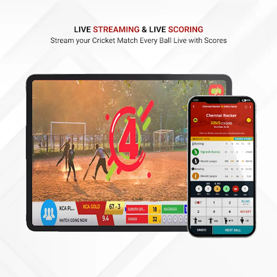 ➔ Ball by Ball Scoring with all the Extras, Wickets, Penalty Runs, and all features of Cricket in a much simpler UI.