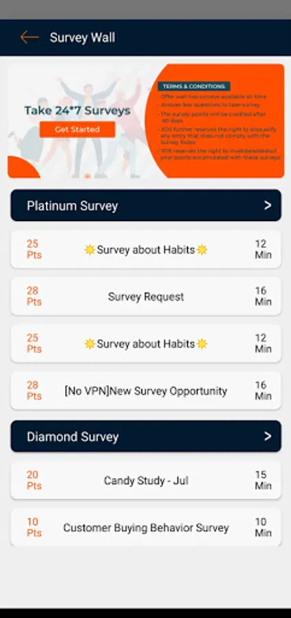 • Click on 24X7 survey banner at any time and participate in live surveys