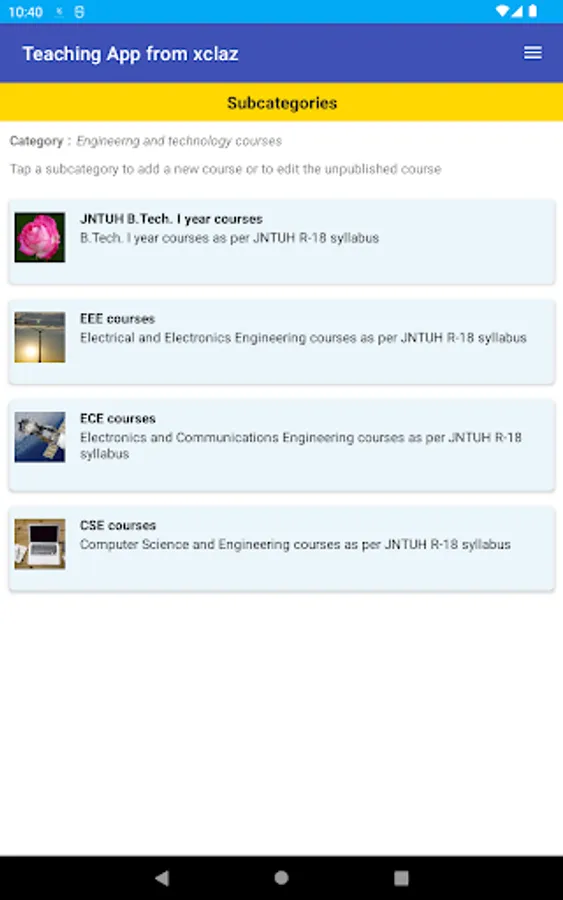 Important Features : Course contents can be recorded videos, live streaming sessions. It is also having a continuous evaluation mechanism in the form of quizzes; two different types of quzzes are possible - one simple quiz and the other an advanced quiz. Exclusive question-answers forum support is provided to each of the courses that you offer. You will receive alert whenever an event is triggered in the course. For instance, if a student starts trying your course, a new enrollment happens in the course or a question is asked in the forum.