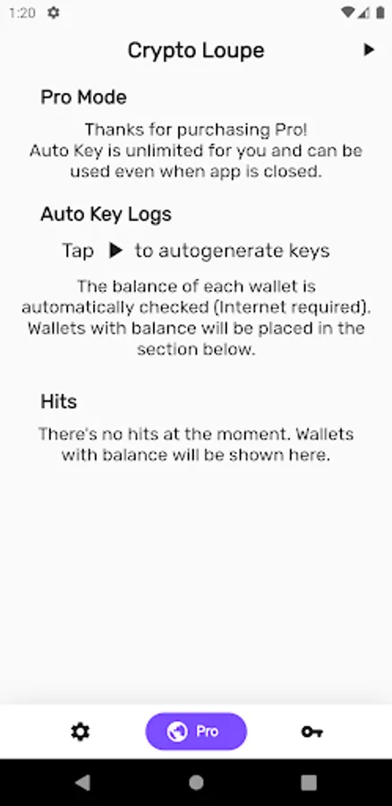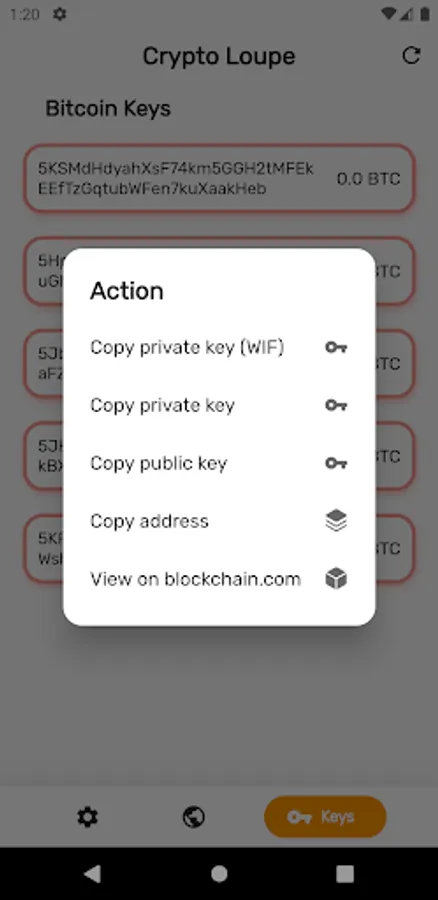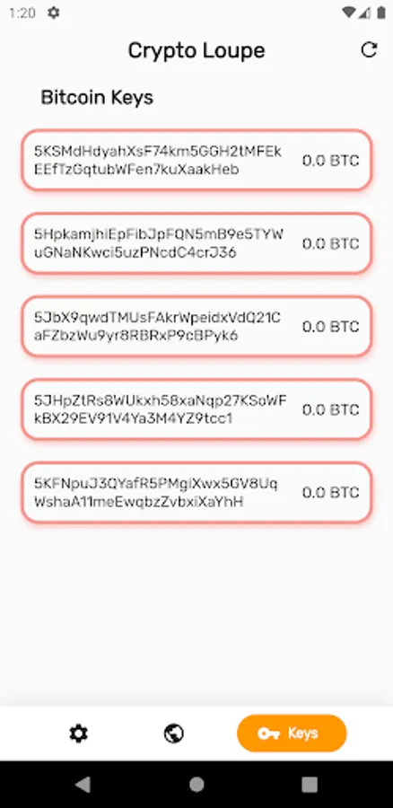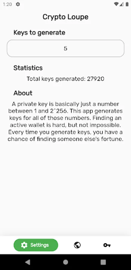 There are 2^256 possible keys that are generated by this app. Finding an active wallet is hard, but not impossible. Every time you generate keys, you have a chance of finding someone else's fortune.