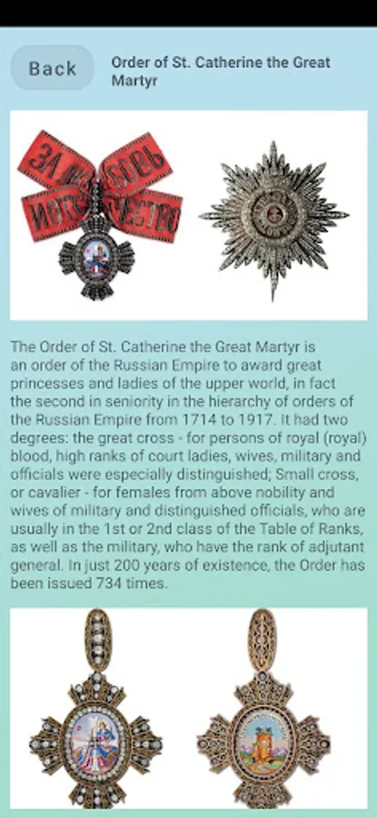 Catalog of awards of tsarist Russia. The catalog includes medals, orders, St. George's crosses, awards of the military order from the 18th century to 1917 inclusive, militia crosses (photo and short description).