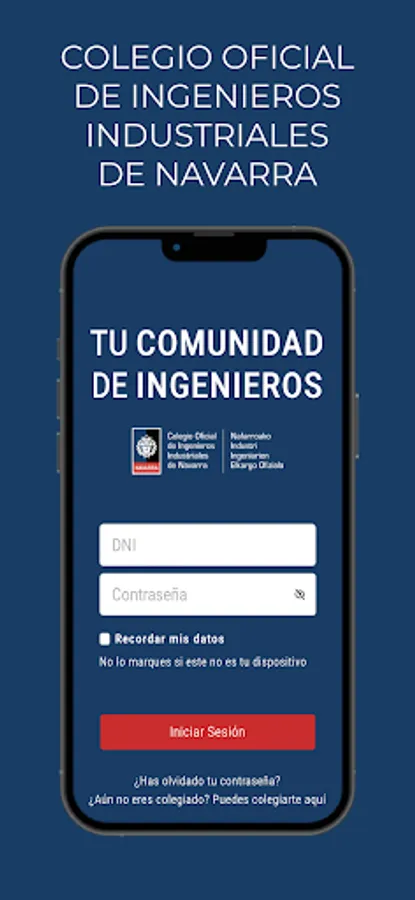 In the App of the Official College of Industrial Engineers of Navarra you have at your fingertips all the services that the College offers its members: