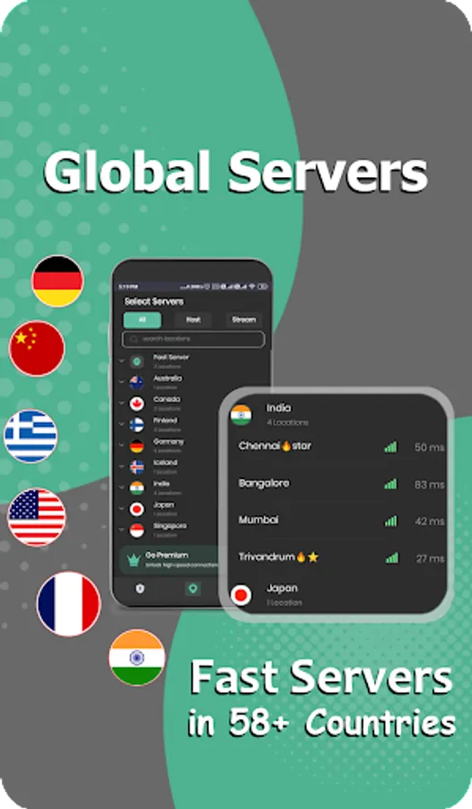Choose from more than 100+ VPN servers in different countries. The perfect one is just a click away!