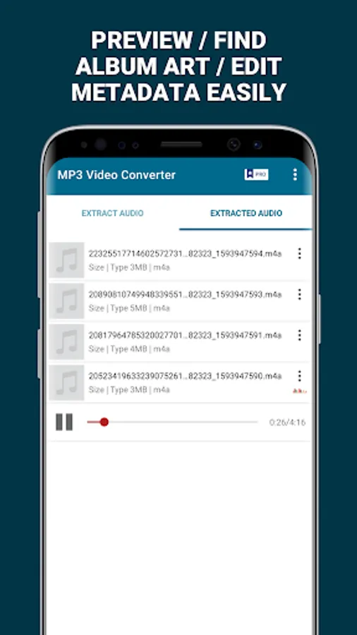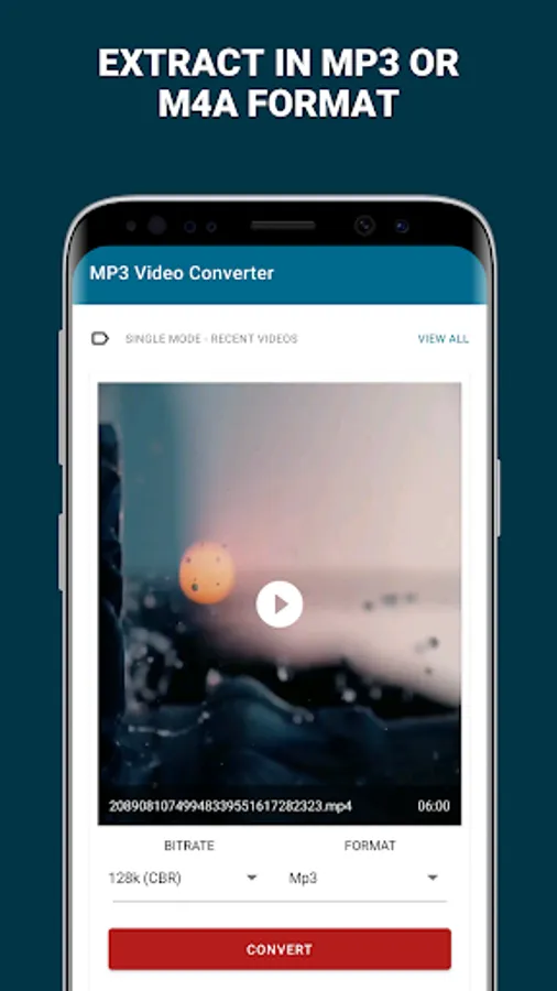With MP3 Video Converter now you can easily extract audio from your video(s). Simple process just tap select video to select video file and then tap convert to extract the audio in mp3 format.