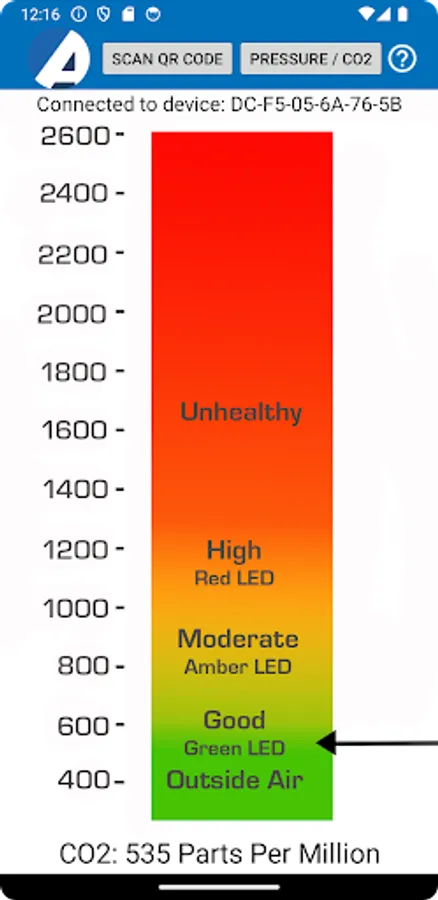 This application enables users to actualize the full potential of the IAQ device suite. By scanning and connecting to devices via QR code, the user can view CO2 metrics collected by said device.
