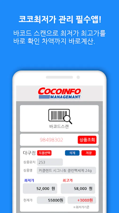 When you check the lowest costco, you can check the difference between the highest price and the current price with easy barcode recognition.