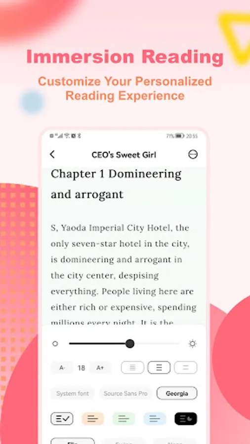 Customized reading setting allows you to have a better and more comfortable reading experience.