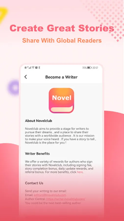 A world without stories is a world without colors. Whether you are an experienced writer or just a beginner, Novelclub welcomes you to join our pay-to-read project. Here you get to share your ideas and introduce your stories to readers across the world .