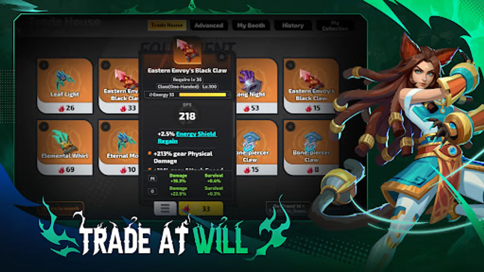 Utilize the Trade house to be a part of a booming economy with an infinite amount of hero builds to trade. One hunter's trash might be another hunter's treasure!