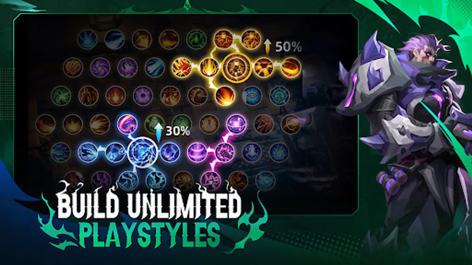 With unique heroes, 24 talent tabs, 200+ legendary gears, 240+ powerful skills, Try out infinite playstyles or strategic possibilities on hero builds. Build your very own hero!