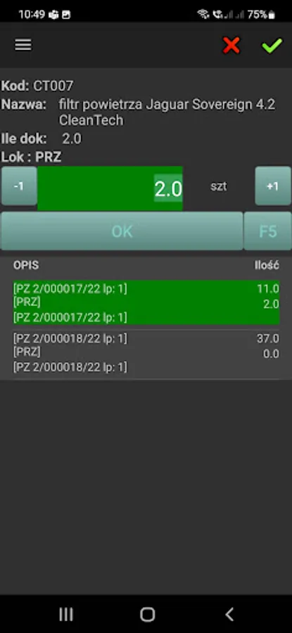 The application also makes it possible to verify the issued document, e.g. by a trader in enova. During verification, the warehouseman uses a scanner to check the correctness of the issue of goods, both in terms of a specific file and the quantity.