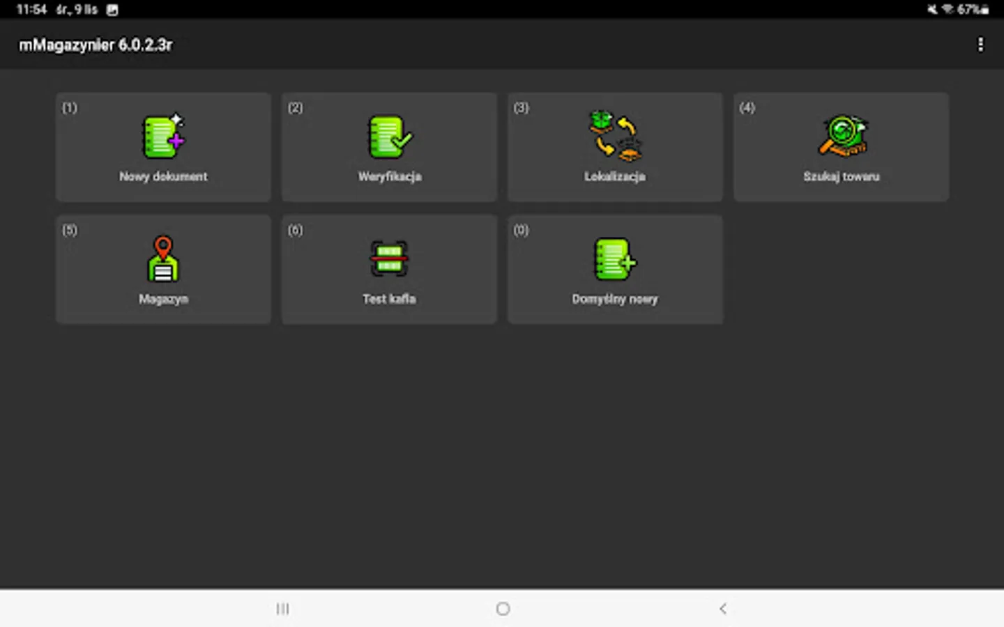 The application cooperates with the enova365 program. It allows you to create new documents (eg WZ, GRN, MM, FV, ZK etc.) directly by a warehouse employee using a portable terminal and barcode scanner.