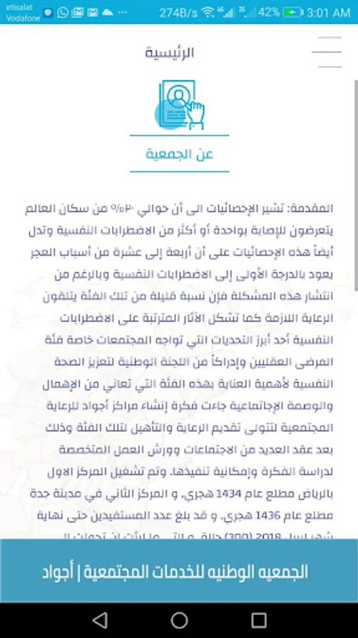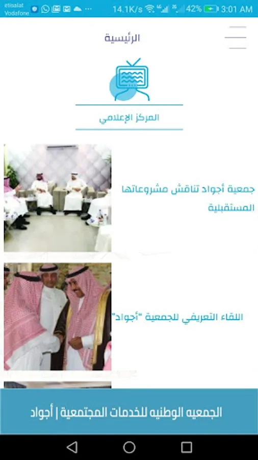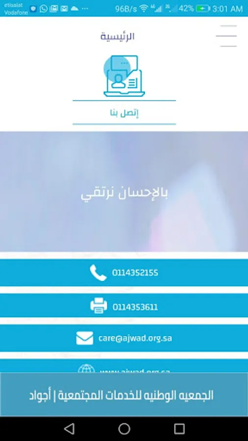 Application Ajwad Center for Community Care, an application designed to communicate with users and identify the latest activities of the center