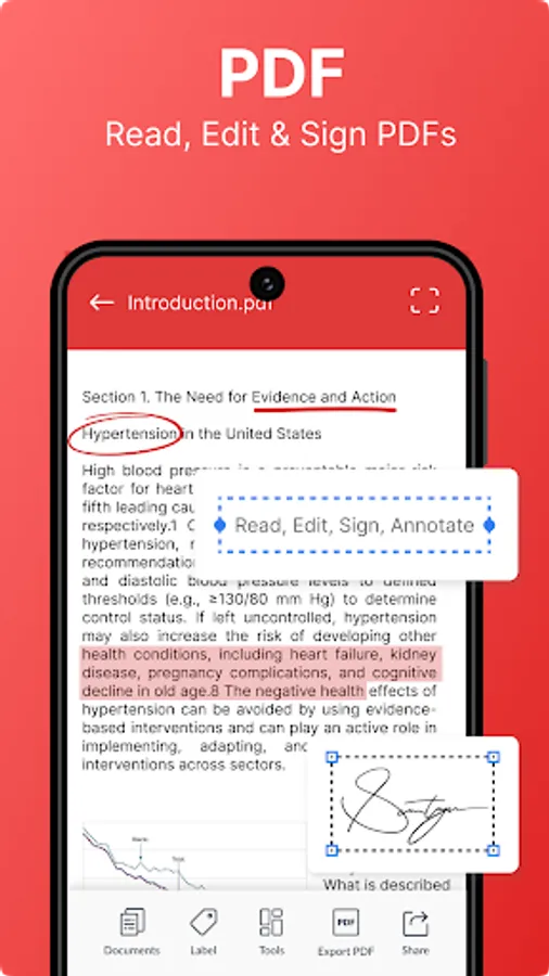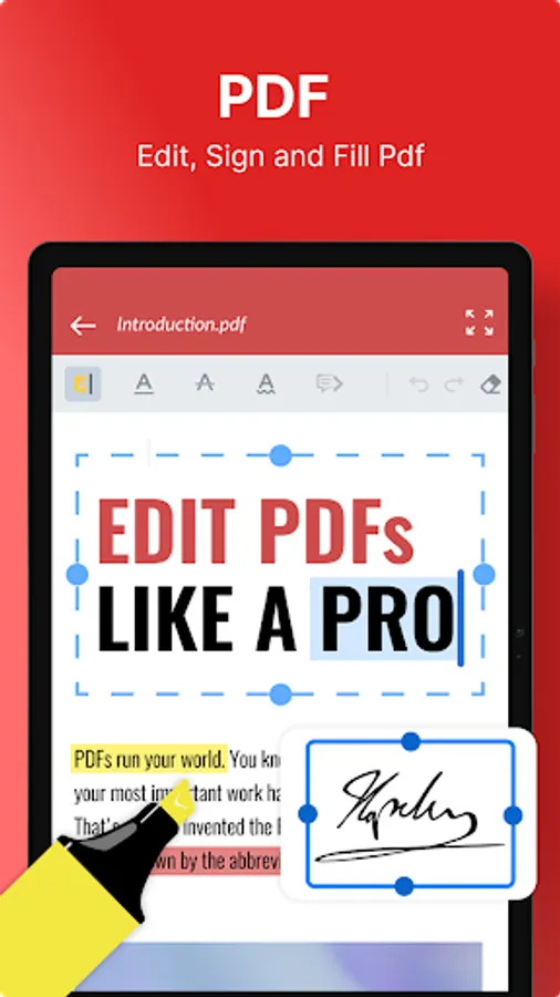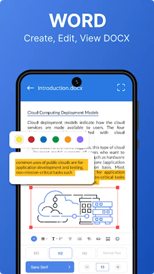 ⭐ Word Editor Office app has some advanced features for editing existing texts, you can highlight, annotate, draw, organize, convert, etc. It also has features to read any documents for a free, fast, and easy PDF reader, and editor features.