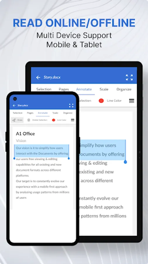 You can use the Word office reader & Editor app for viewing all the doc, and docx documents on your phone even when you are offline. You don't need an active internet to view and manage your Word, docx, pdf, and xls files.