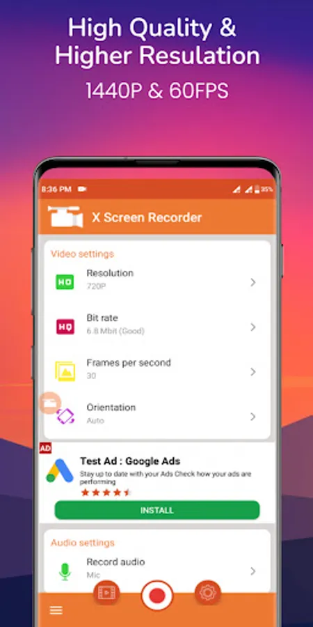X Screen Recorder is a screen recording app to record audio and also record with camera as well.