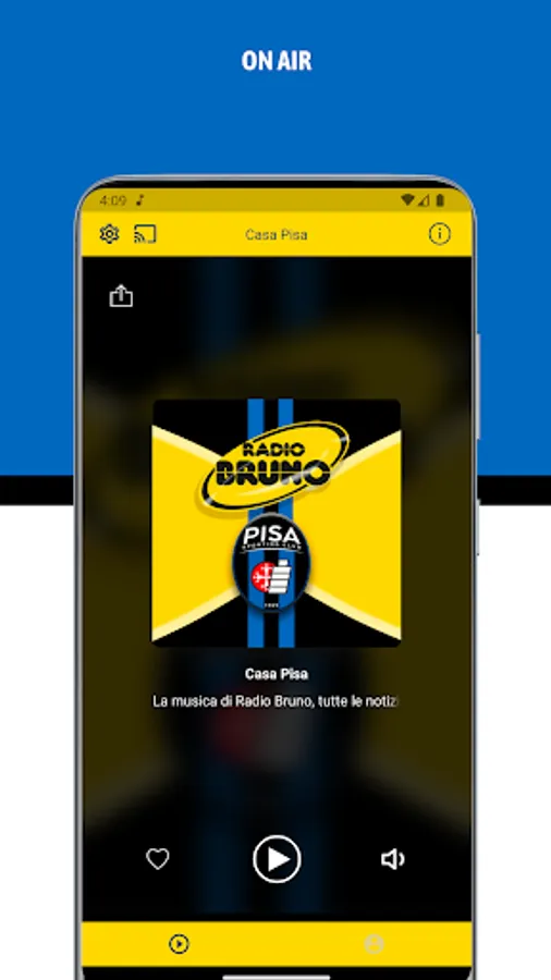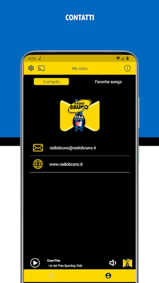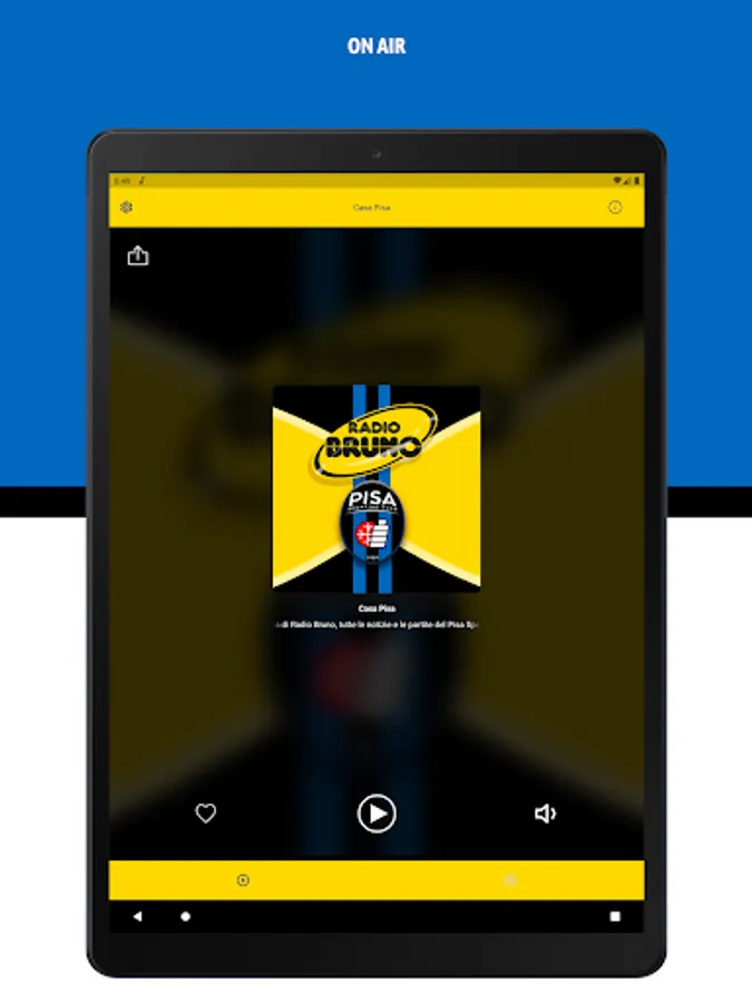Everywhere the music of Radio Bruno and all the news and matches of the Pisa Sporting Club.