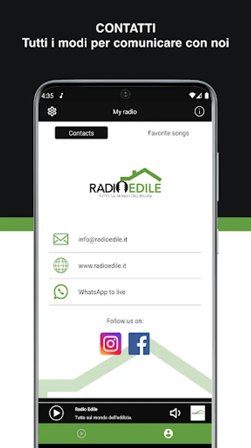 For professionals in the sector and for all those looking for up-to-date news on renovations and energy adaptation. Radio Edile also plays a lot of good music.