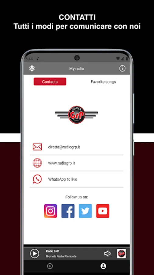 Piedmont your region, G.R.P. your Radio. The great pop hits and the news of Piedmont always with you!