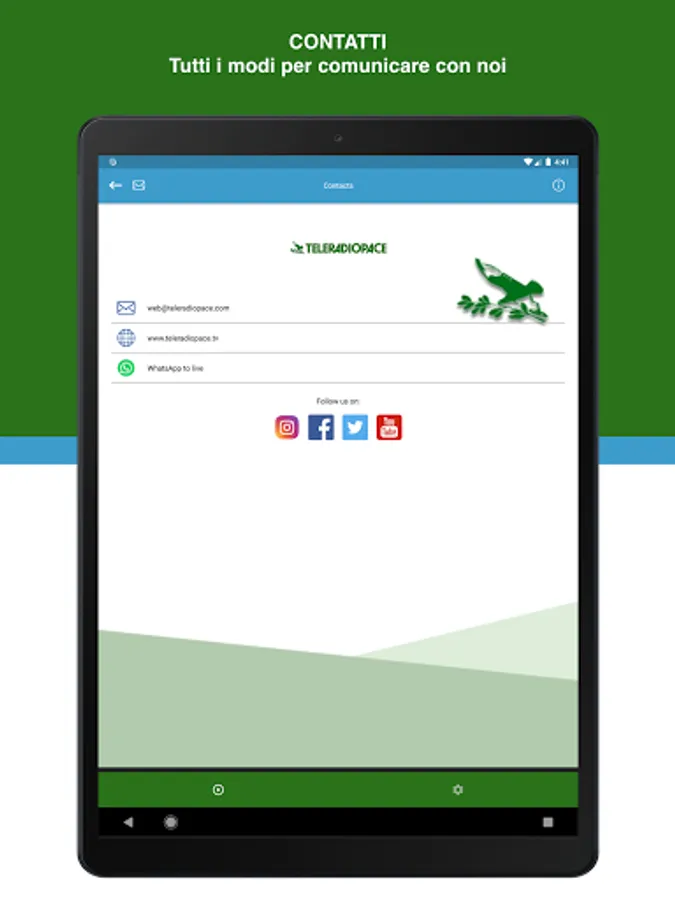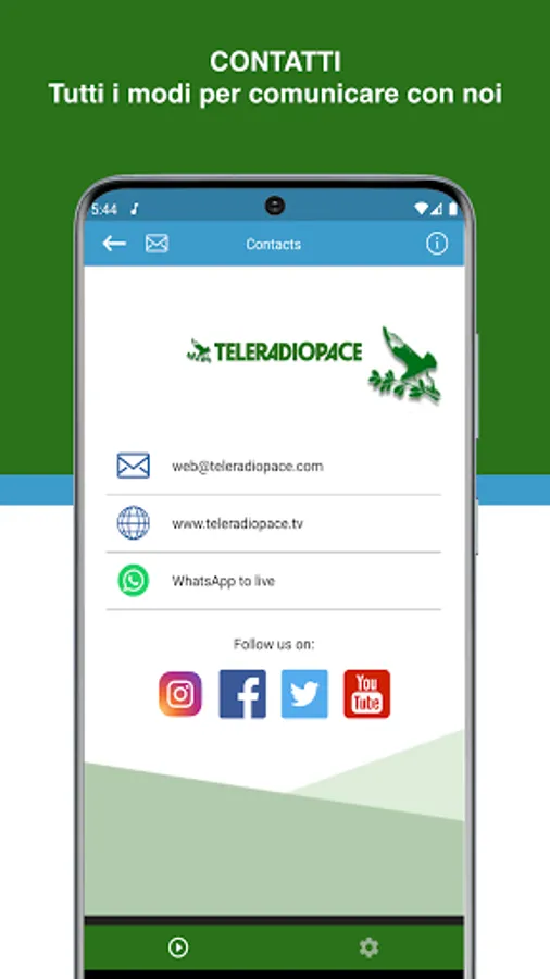 Carry Teleradiopace TV news and broadcasts always in your pocket. On your portable device you will have news from Tigullio and the Diocese of Chiavari available. News, columns, direct and in-depth analyzes on current issues and the life of the local and universal Church.
