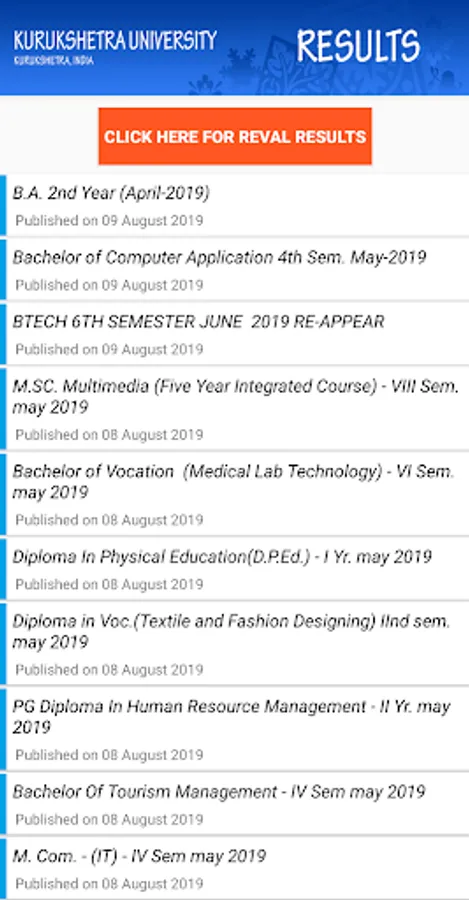 Disclaimer>: This app is not affiliated with Kurukshetra University or any other government organisation. The results list displayed on the app is retrieved from the official university website https://results.kuk.ac.in and is not manipulated in any form by us.