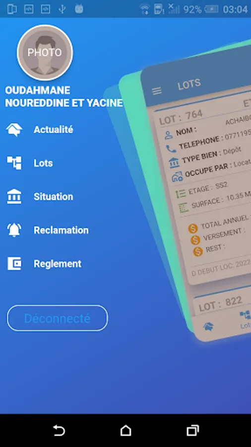 It is an application intended for the owners of the premises at the level of mohamadia mall shopping center, which allow them to consult all that concerns their LOTS (Payments, Situations, News ...) ansi to make complaints on the problems ...