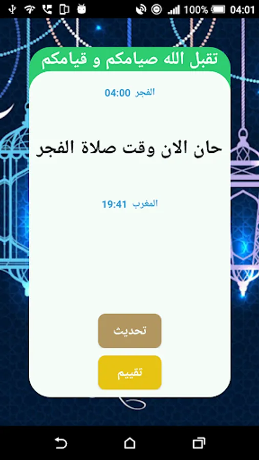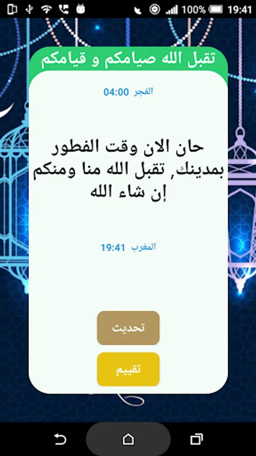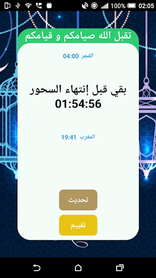 Also it allows you to apply the Ramadan the possibility of running the alarm clock to alert you before the arrival time of the duration of the breakfast time you specify, as well as with sahur time