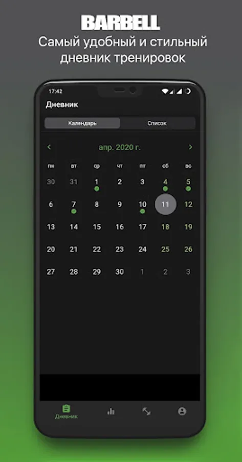 Barbell is a training diary for people who know what to do in the gym.