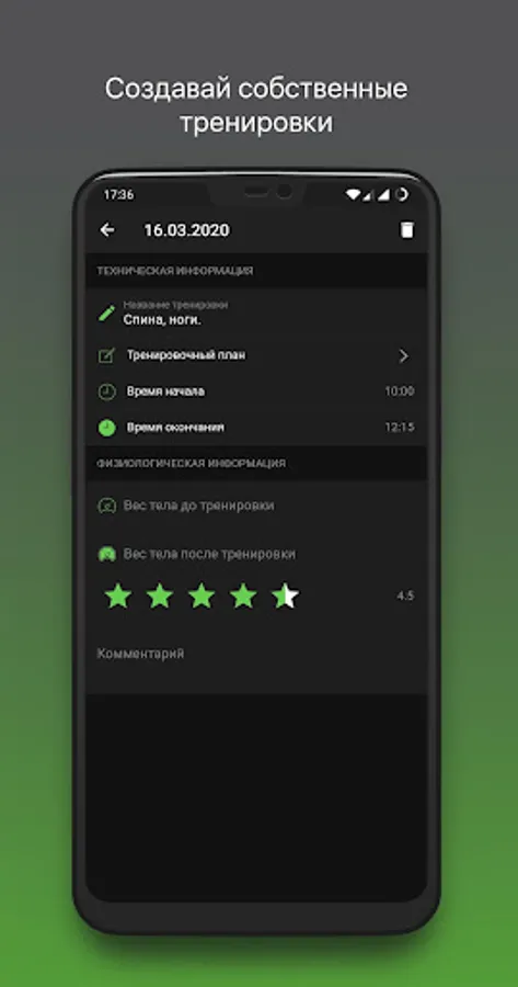 The application with a convenient intuitive interface will help in creating your own training program.