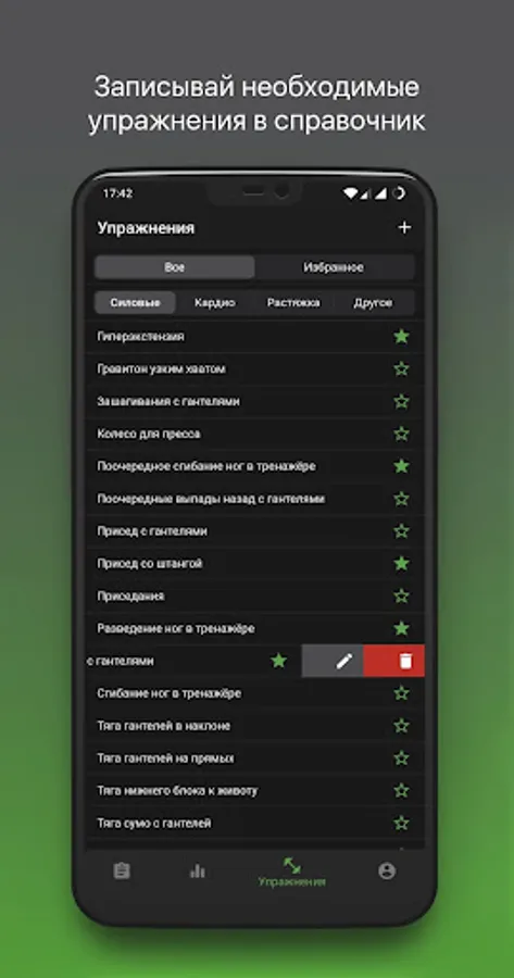 Now you can forget about the note forever! Barbell reliably saves the entire history of your workouts and helps track progress.