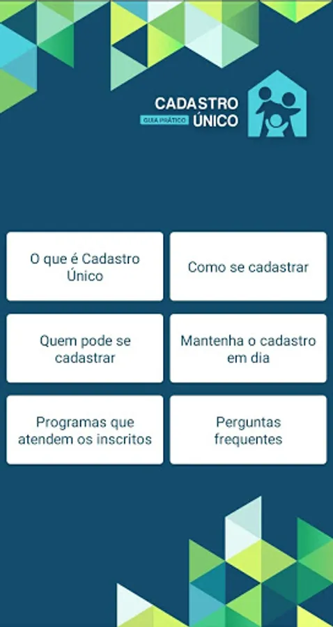 Please note that this application does not pose as an official Cadastro Único application, but rather as an informative guide to help you understand and register. Always consult the program's official website for more important questions (https://www.gov.br/mds/pt-br/acoes-e-programas/cadastro-unico) and, if necessary, get in touch via the official channels contained in the link.