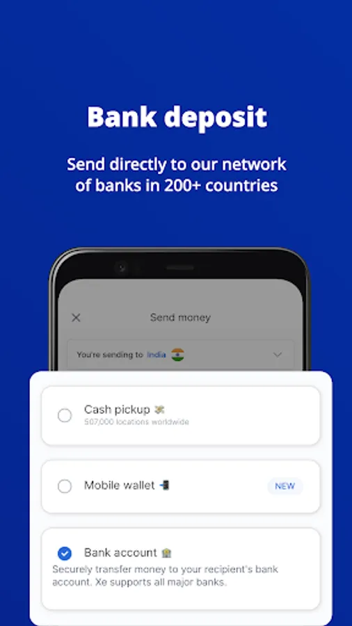 We send money transfers directly to hundreds of major banks globally, making your mobile payments easier than ever. Xe makes it easy to send international money transfers for cash pickup to over 500,000 locations in 150+ countries globally.