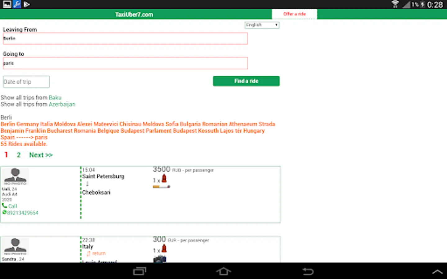 With access to millions of journeys, you can quickly find people nearby traveling your way. The difference between plaplacar app english, plaplacar daily, plaplacar driver app, plaplacar bus, plaplabus, plahplahcar and Blataxi we don't hide driver phone number. The difference between Indriver driver app and Blataxi there is no need to registration with account in Taxiuber7.com
