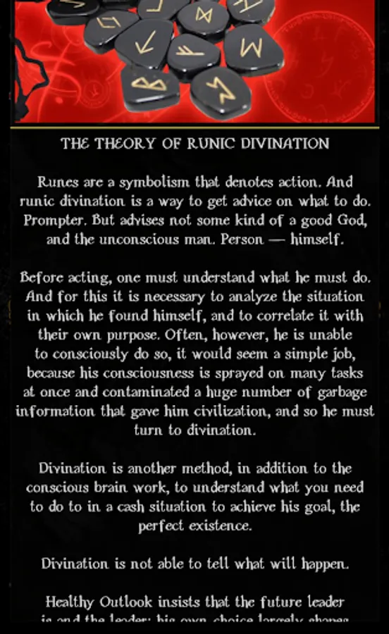 Runes are an ancient magic system that represents the basic forces of nature. For centuries runes were used for divination and making important decisions. As divination by playing cards or Tarot divination, runes are always very accurately predict the future and help to choose the right line of conduct.