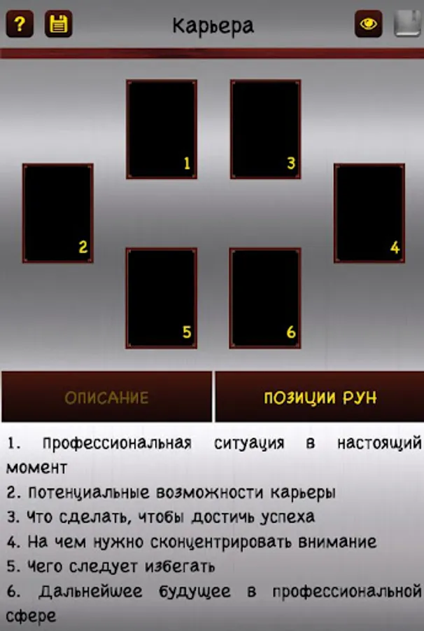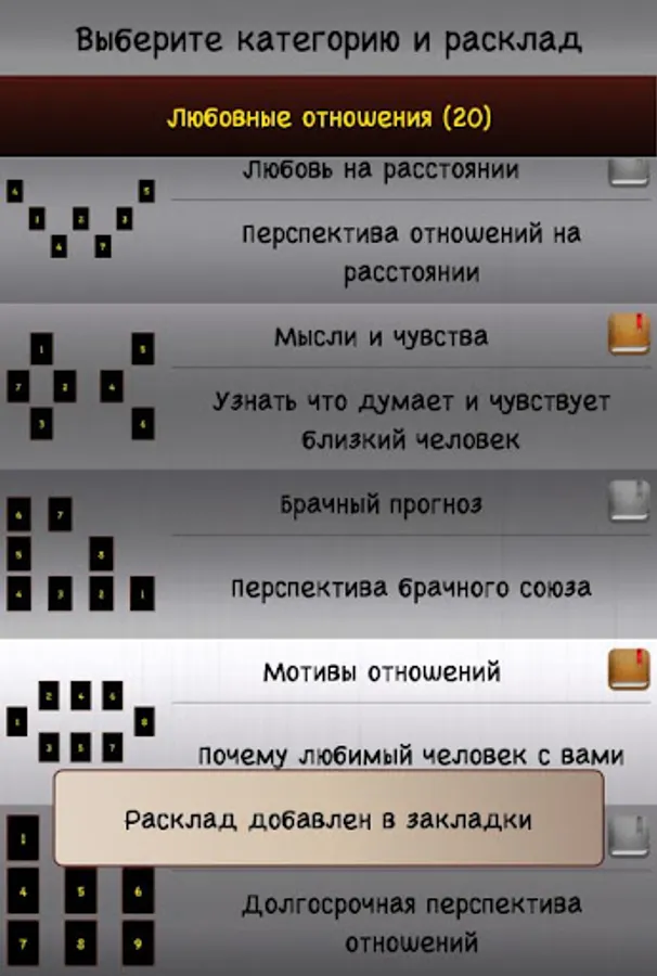 ✔ the ability to add cards and spreads to favorites, as well as view and save the value of the cards directly in the spread (only available in the full version).