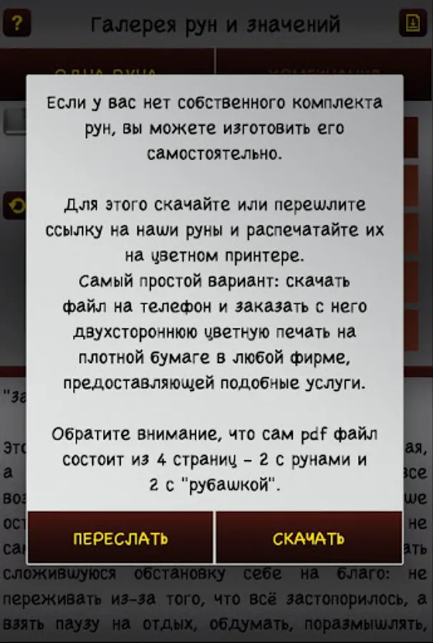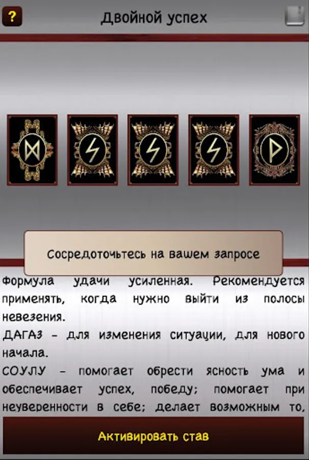 ✔ a simple and understandable algorithm for divination on runes;