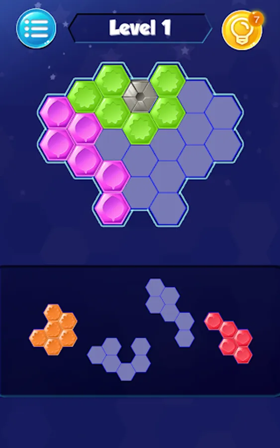 Hexa Block Puzzle is easy to play but with challenges.