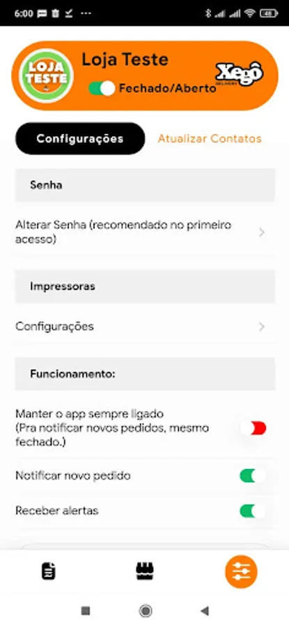 We present the app for receiving orders for registered merchants and members of the Xegô Delivery platform.