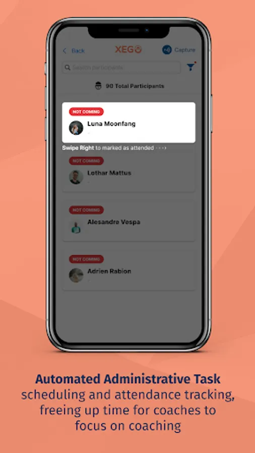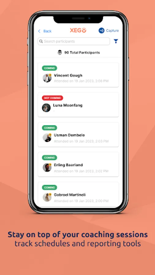 One of the key features of Xego Coach is its easy-to-use interface. With just a few taps, you can create an event and invite participants, making it easy to keep track of who's coming and who's not. You can also mark attendance for each participant with just a tap, eliminating the need for paper records or manual data entry.