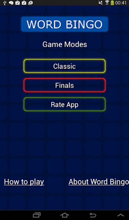 There are two modes: Classic and Finals. In Classic mode, practice with lots of different levels and prepare yourself for Finals. In Finals mode, guess as many words as you can in 2 minutes 30 seconds. Then draw balls to achieve Bingo!