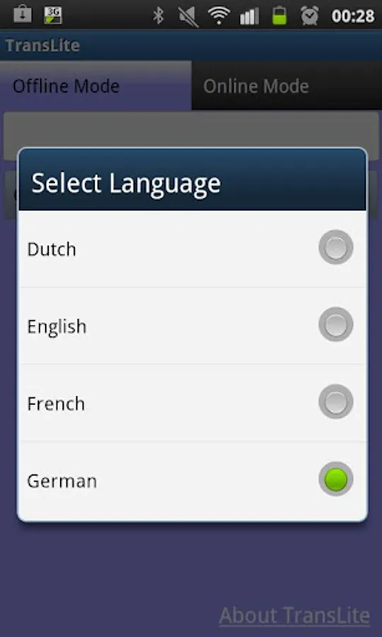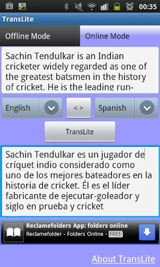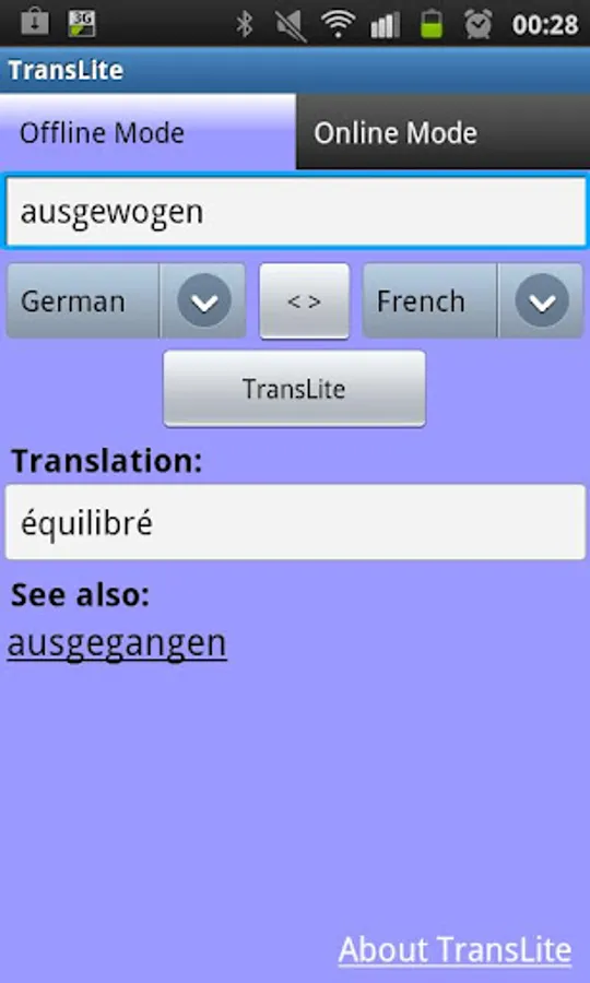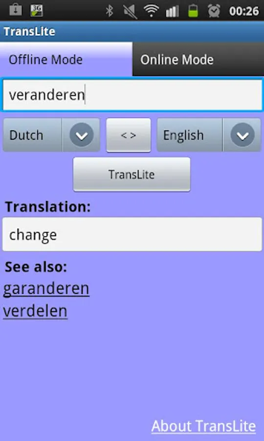 - In Offline Mode, TransLite translates only words and no sentences yet.