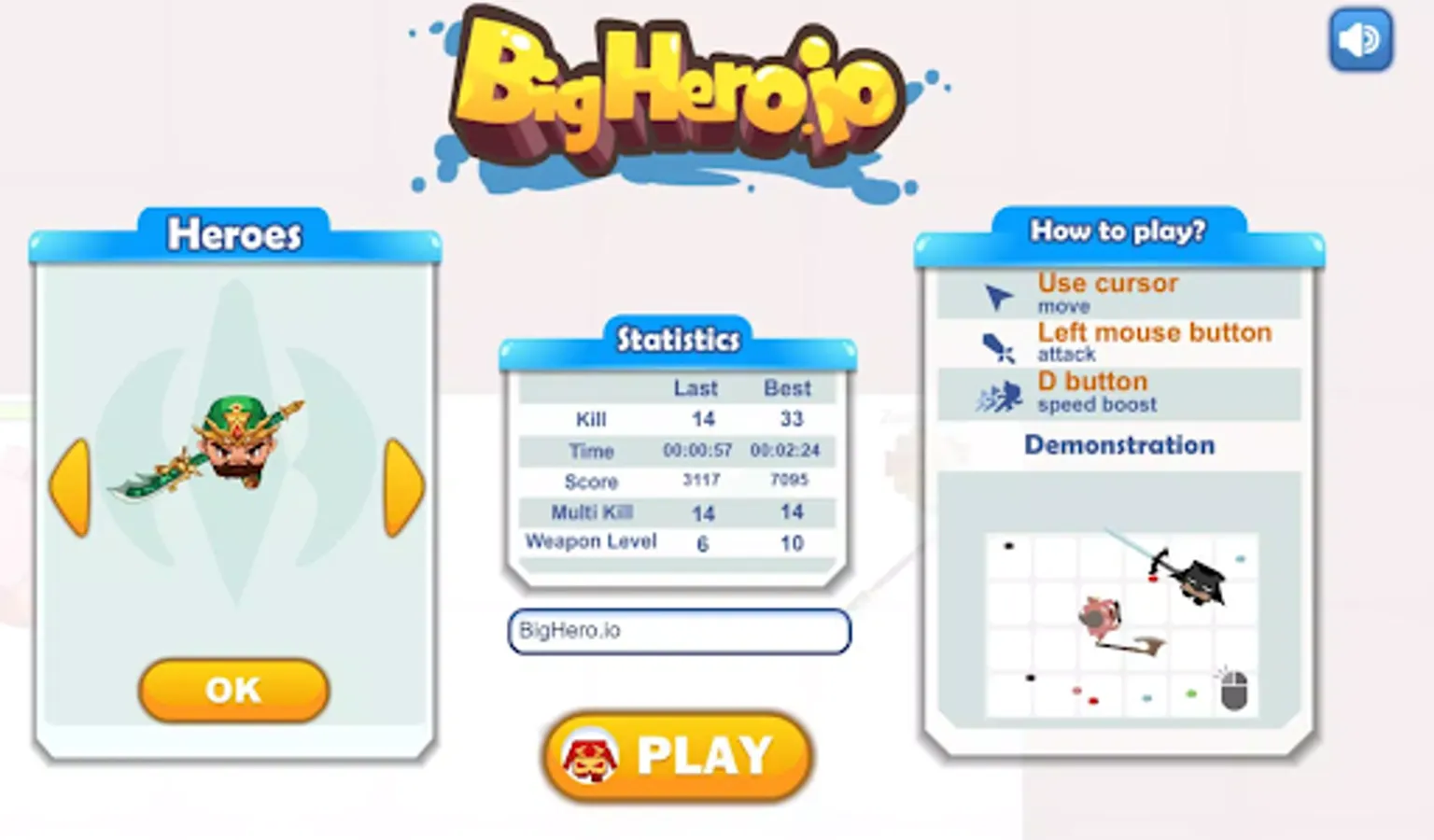 BigHero.io is a new multiplayer game, where you will enjoy plenty of fun. Become the greatest and the most powerful hero. Choose your character and go for a fight. Your task is to survive as long as possible and kill as many enemies as possible. Collect stones that raise your level. Fight for the highest score. lead the score table and let everyone see who is the best.