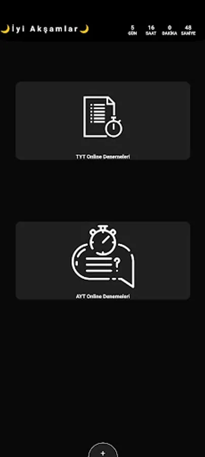 Yks 2024 counter, Ayt 2024 counter, Tyt 2024 counter and Tyt Ayt 2024 counter features have been added, so you can see how much time is left for the exam.